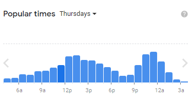 An example of a non-normal distribution is customer frequency on Thursdays at the McDonald’s on Time Square in New York, according to Google Maps as of 8-30-23. You can see there is a customer rush around lunch time and around dinner.